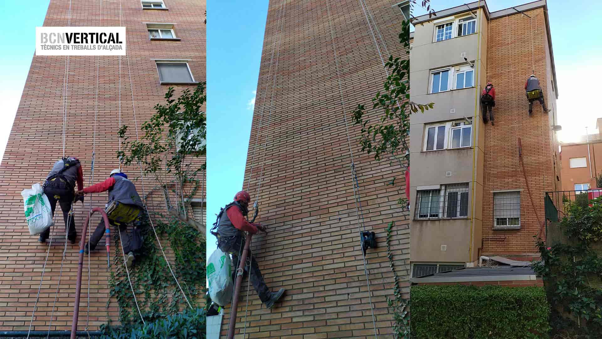 Aislar fachada sin andamio es posible con la colaboración de empresas especialistas en trabajos en altura como Barcelona Vertical. Un ejemplo muy gráfico de ello es el ejemplo de insuflado de celulosa en fachada por el exterior en Barcelona, con la particularidad de que se trata de un edificio entero.